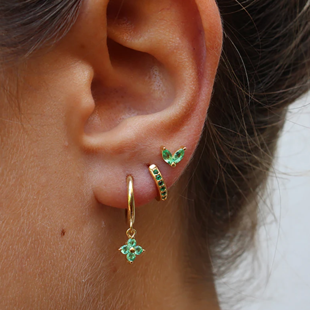 Cercei tip cerc placati cu aur de 18 karate verzi cu cristale spațiale