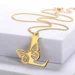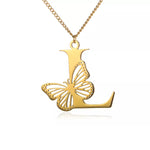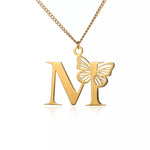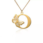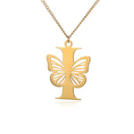 Colier cu inițiale fluture libertate placat cu aur de 18K