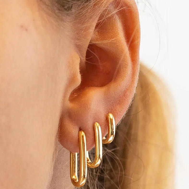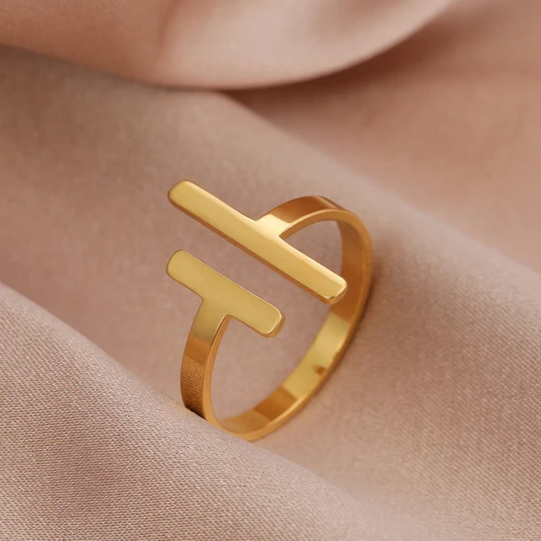 Set de trei inele dreptunghiulare placate cu aur de 18K