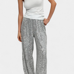 Irradiază glamour și încredere cu Elva: niște pantaloni din lentejole concepuți să strălucească cu o forță proprie. Croiul lor relaxat și talia înaltă pun în valoare silueta cu eleganță, în timp ce finisajul strălucitor transformă orice ținută într-o declarație de neuitat. Perfecți pentru nopți de petrecere, sărbători sau pur și simplu când vrei să ieși în evidență.