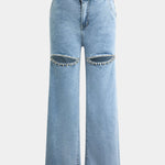 Jeans Evian Ripped Straight-Leg cu Rhinestones