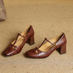 Fabricat din piele autentică moale, acest pantof este conceput pentru confort de zi cu zi cu o tălpică ușor căptușită și un elegant toc pătrat care variază de la 5 cm la 8 cm.