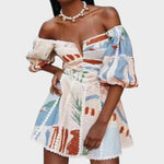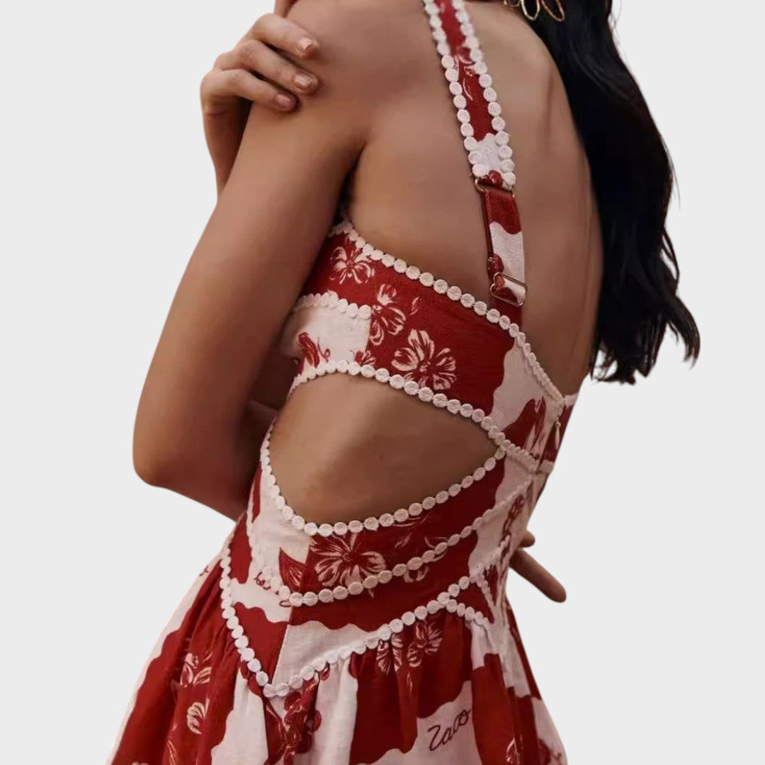 Rochia Sabella se remarcă prin estetica sa îndrăzneață boho-chic. Croiala structurată, cu decolteu în V și laterale deschise, pune în valoare silueta într-un mod senzual și elegant în același timp. Detaliile de croșetă albă adaugă o notă artizanală, în timp ce imprimeul floral conferă un aer vintage modern. Ideală pentru zilele de vară, escapade romantice sau festivaluri.