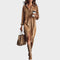 Descoperă rochia midi ideală! Această rochie confortabilă și elegantă, în stil cămașă, este confecționată din pânză de calitate, oferind un efect clasic perfect pentru orice ocazie.