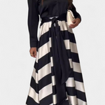 • Fustă fluidă cu dungi orizontale ce adaugă dynamism vizual.
