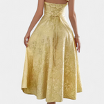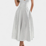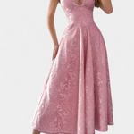 Rochie Midi Gilda din Jacquard cu Spate Decupat și Talie Înaltă