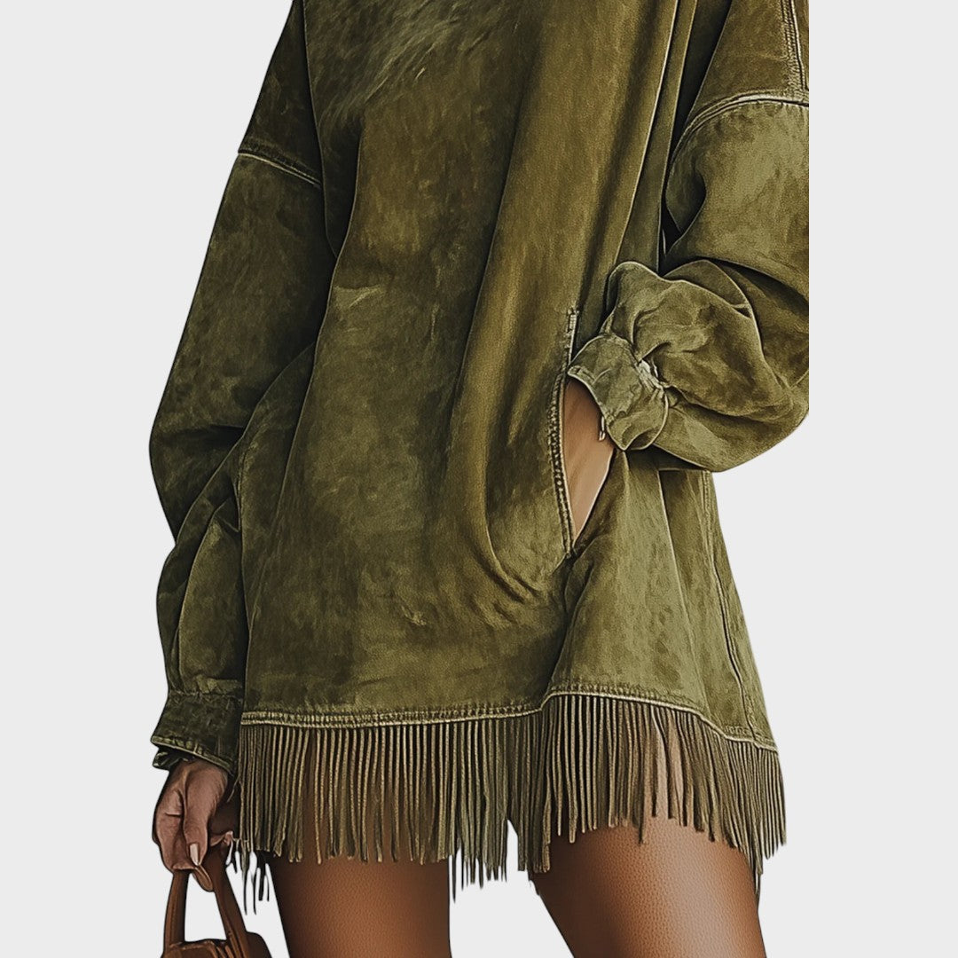 Sheri | Rochie din Suede cu Detalii din Franjuri