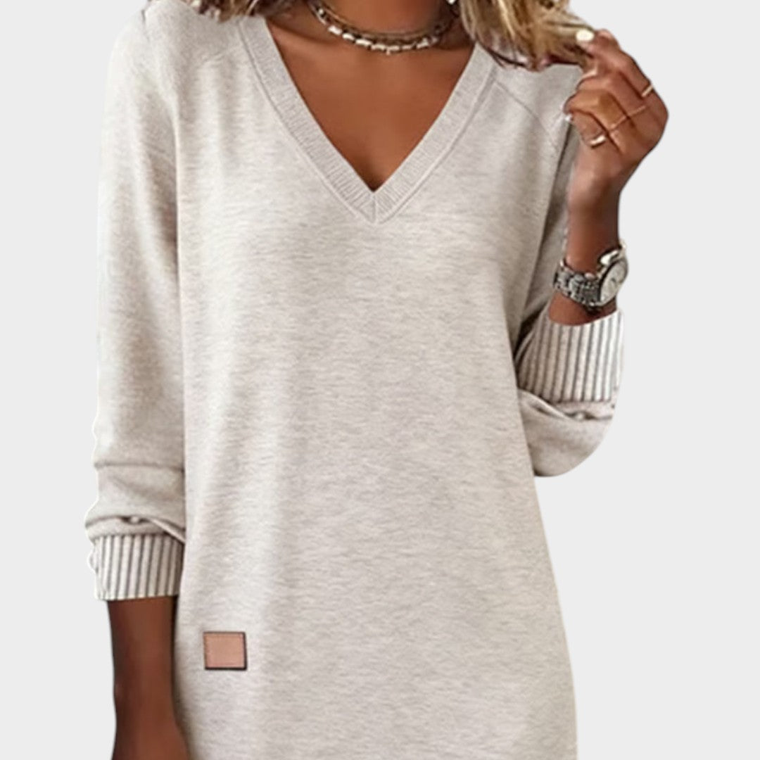Rochie Fluidă Riva cu Decolteu în V și Mâneci Lungi