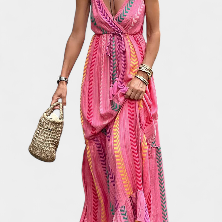 Asunción Rochie Lungă Roz cu Dungi Colorate