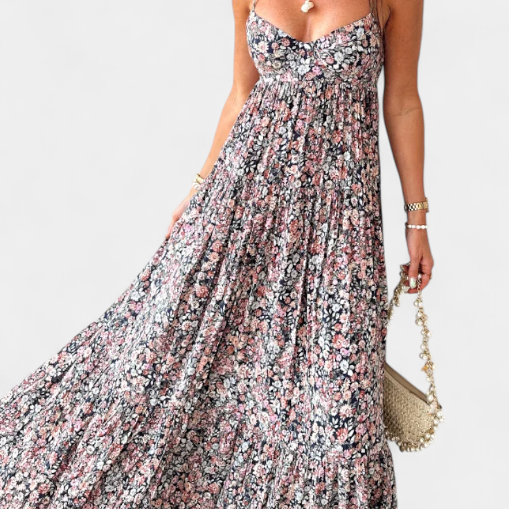 Rochie Maxi Florală Reyna cu Spate Decupat