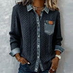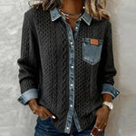 Un top împletit gândit pentru cei care doresc o combinație impecabilă de căldură, eleganță și confort, fără niciun compromis. Tricotul său lucrat în împletitură amintește de moliciunea îmbrățișătoare a unui pulover cald, în timp ce detaliile din denim — guler, închidere cu nasturi și buzunar pe piept — adaugă o notă modernă și la modă.
