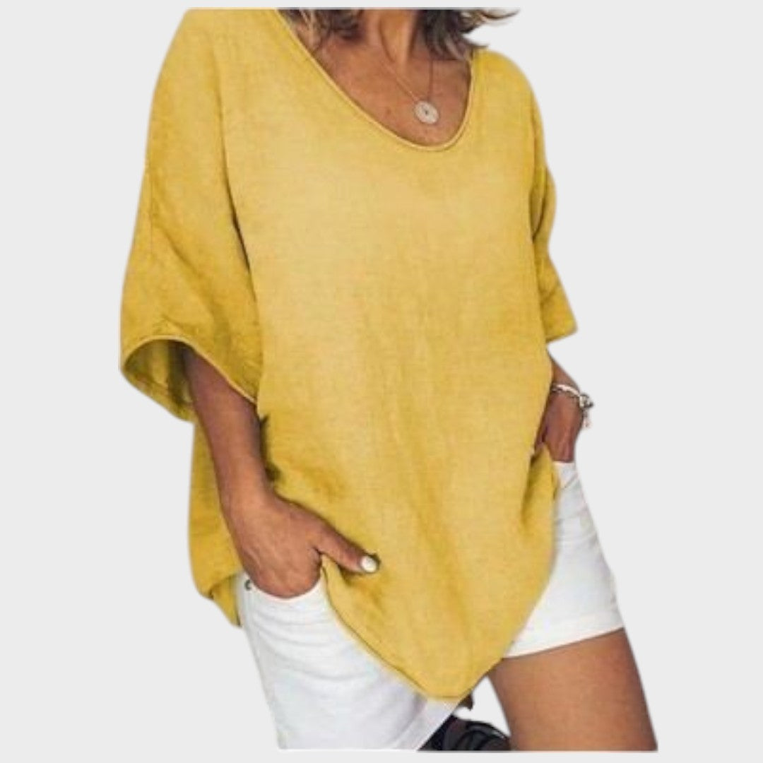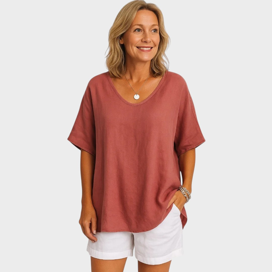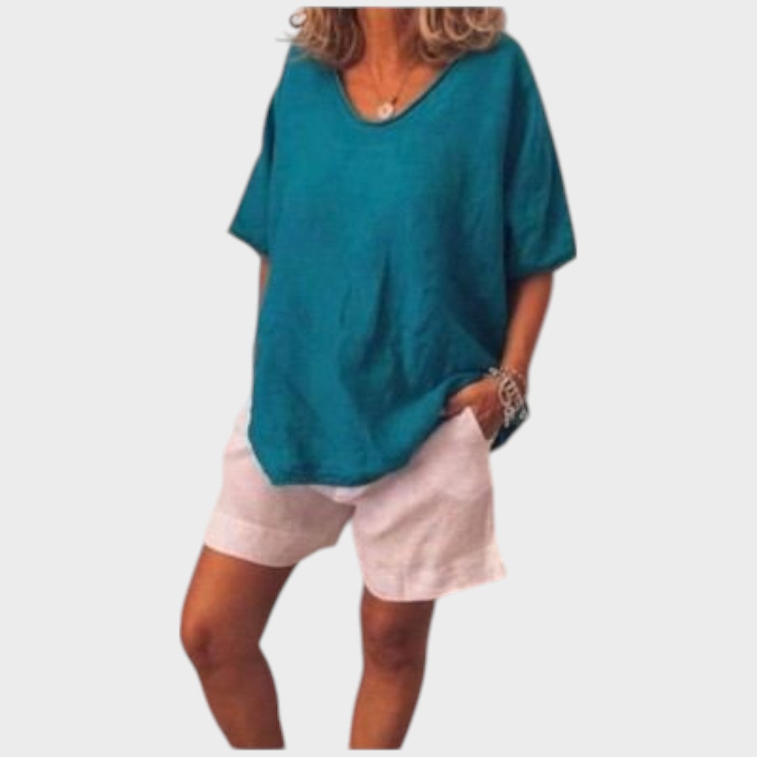 Grace este acel pulover de bază care face diferența în garderoba ta. Cu o croială largă și confortabilă, guler rotund și mâneci scurte, este puloverul ideal pentru zilele relaxate fără a renunța la stil. Confecționat dintr-un material moale și respirabil, se adaptează corpului cu ușurință și delicatețe.