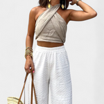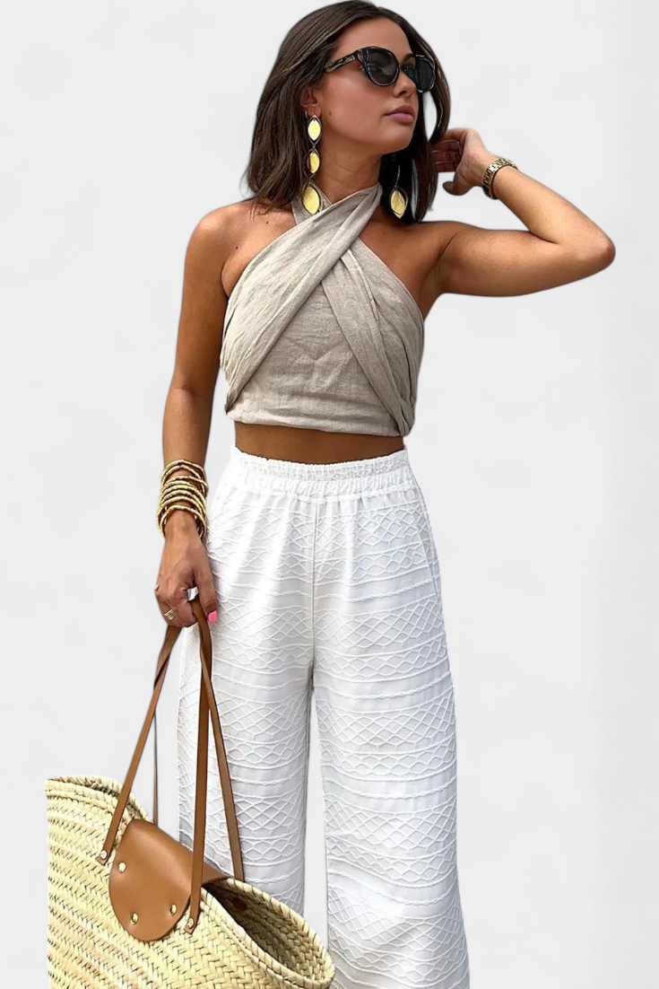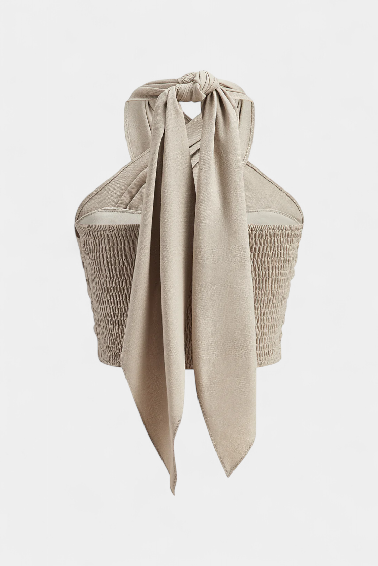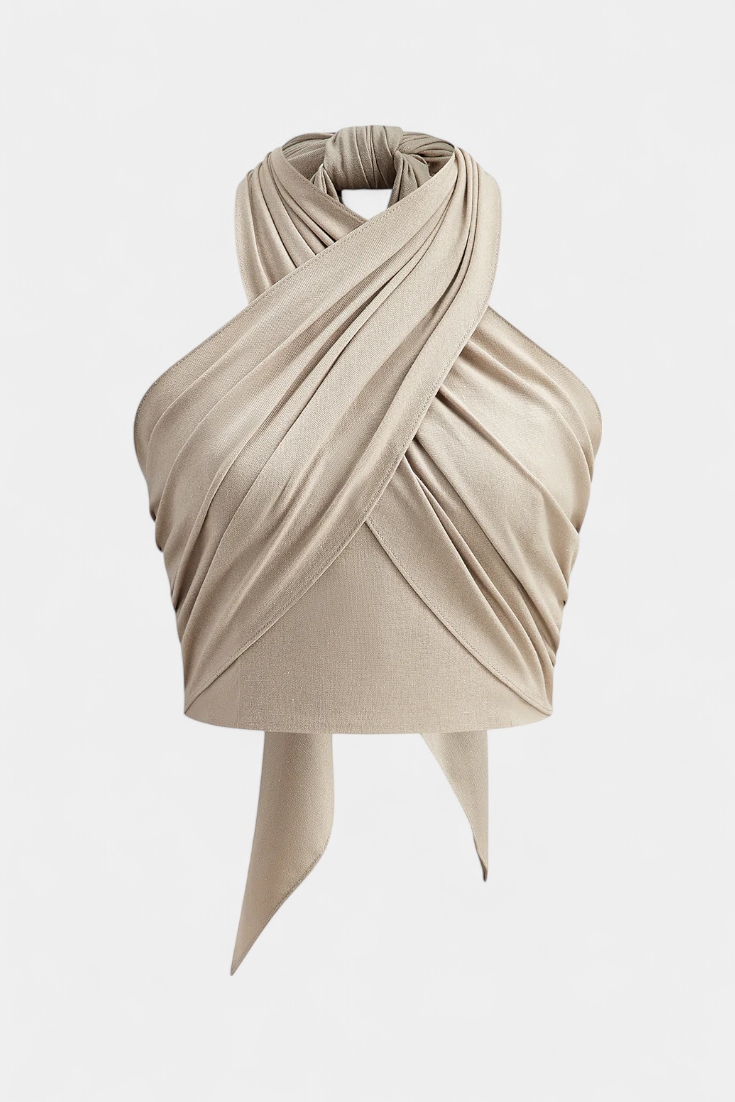 Lena | Top Încrucișat Fără Spate cu Nod și Stil Halter