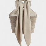 Rafinată și atrăgătoare, topul Lena redefinește vara cu decolteul său încrucișat halter, spatele plisat și fundița lungă. Perfect pentru a fi asortat cu pantaloni cu talie înaltă sau fuste vaporoase, acest top aduce un aer sofisticat fără a pierde prospețimea și ușurința.