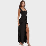 Amira este rochia lungă perfectă pentru vară, cu bretele subțiri și confecționată din fibre ușoare de tergal. Croiala ajustată și talia înaltă pun în valoare corpul, oferind un look sofisticat.