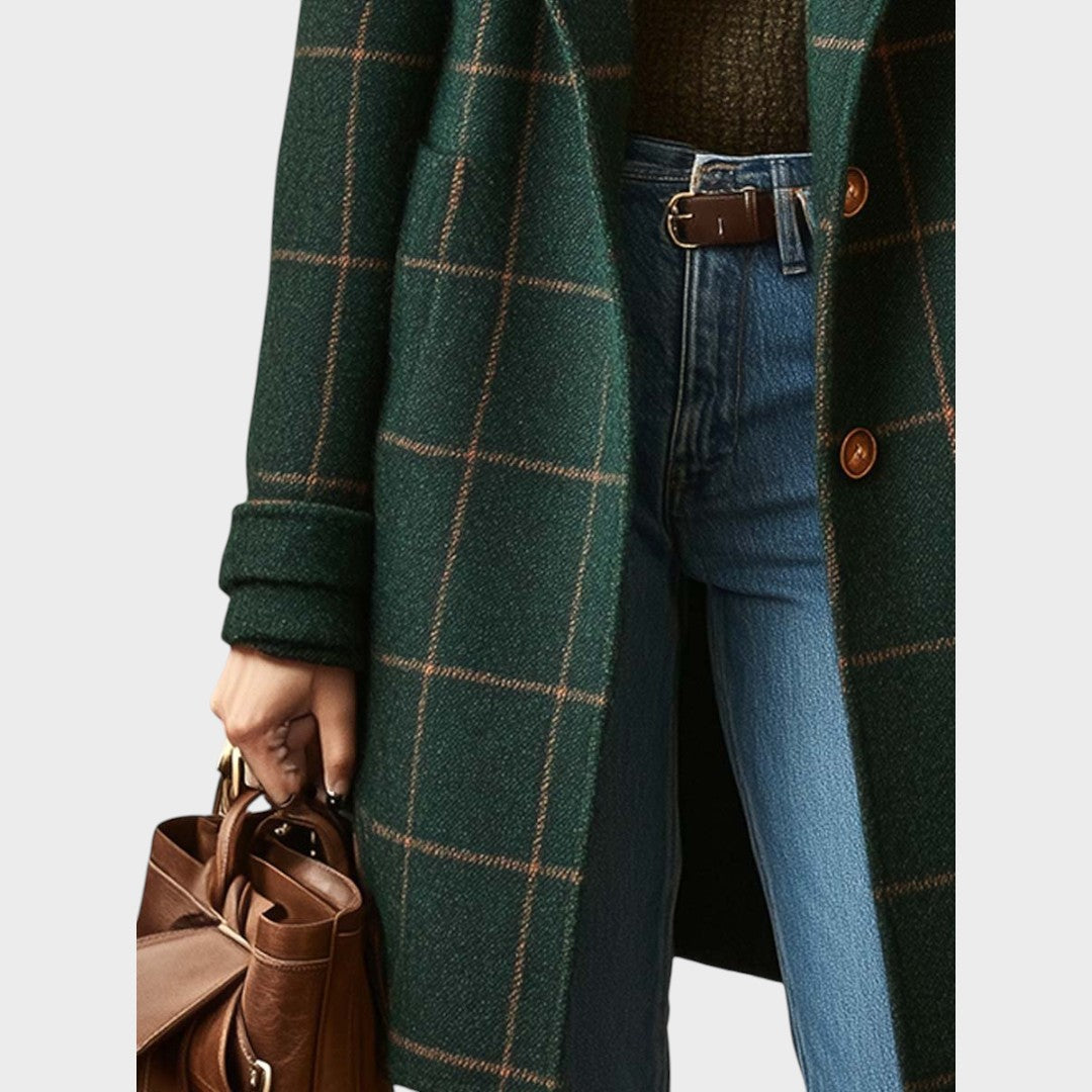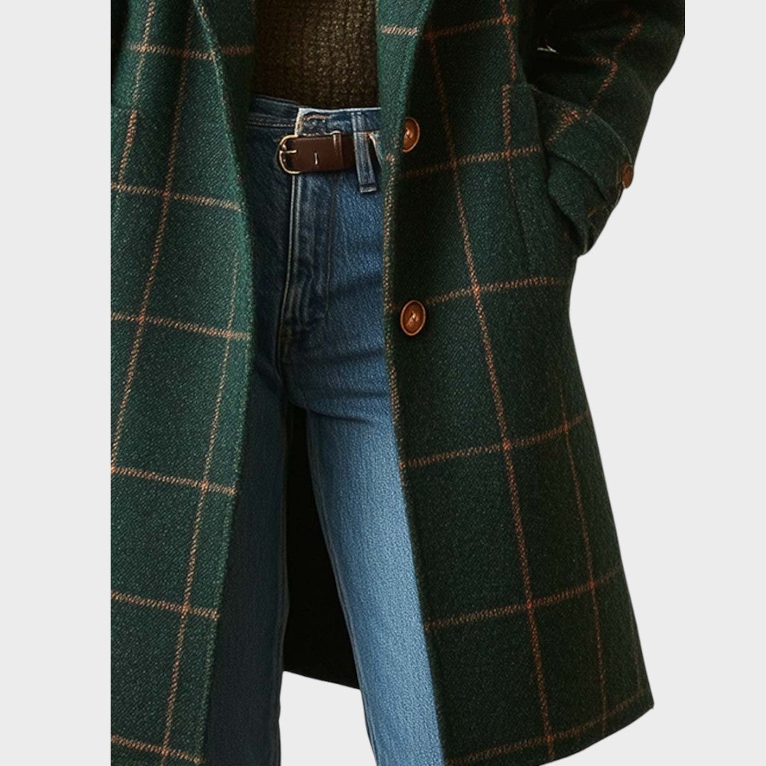 Paltonul Lisandra combină sofisticarea clasică cu o notă modernă datorită imprimeului său de carouri verde intens. Cu o croială structurată și butoane elegante pe față, oferă o siluetă distinctivă care completează orice ținută. Materialul său cald și moale îl face ideal pentru zilele reci, în timp ce buzunarele laterale aduc practică fără a sacrifica stilul. Perfect pentru a transforma ținutele simple în combinații rafinate și încântătoare.