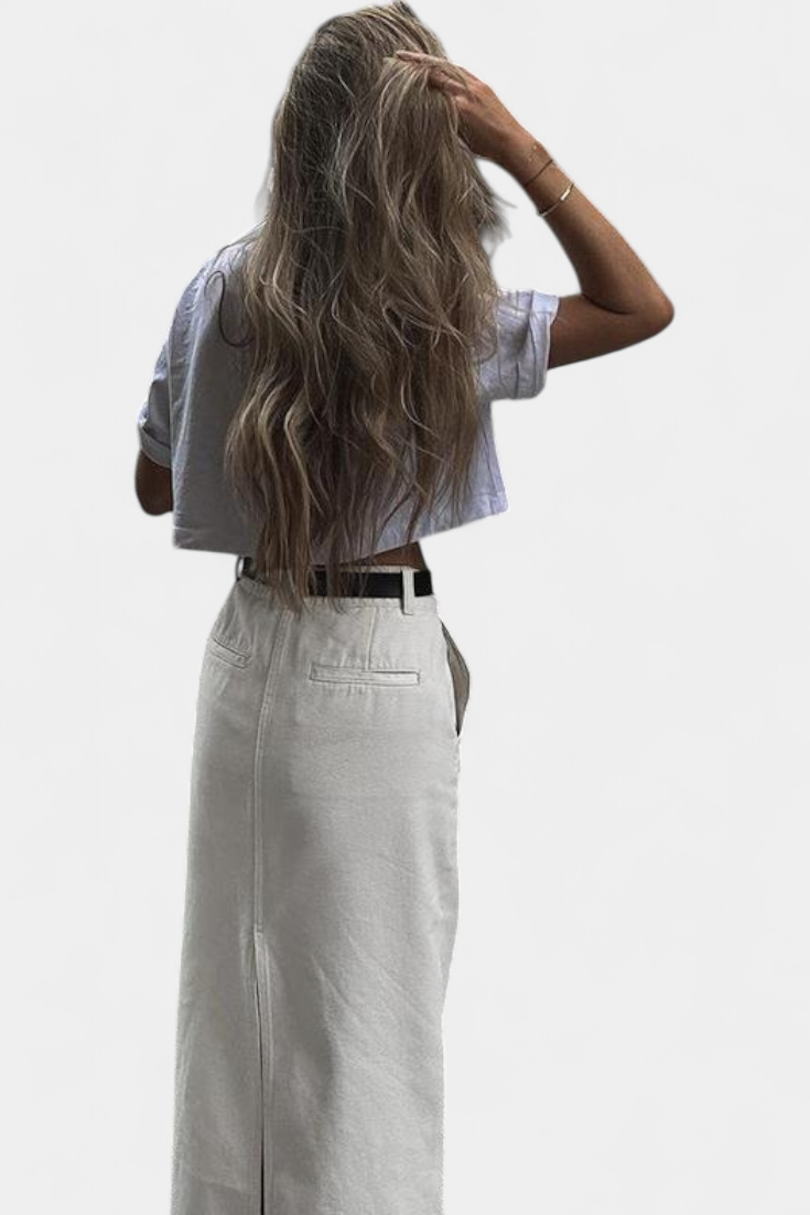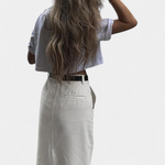 Inspirată de farmecul fără griji al străzilor pariziene, fusta Yenifer combină o croială slim, care pune în evidență silueta, cu o deschidere frontală care aduce sofisticare și libertate de mișcare. Construită din bumbac cu un strop de elastan, garantează confort fără a pierde structură, perfectă pentru look-uri urbane cu un aer elegant.