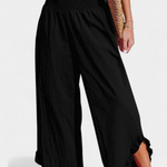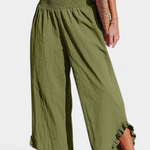 Relaxat, proaspăt și cu mult stil. Pantalonul Justina combină o siluetă largă cu un material ușor din bumbac-in, ideal pentru clima caldă. Talie înaltă elastică care subliniază figura, în timp ce volanele de la margine adaugă un detaliu feminin și încântător. O piesă versatilă pentru ținute de plajă, escapade sau zile de vară fără efort.