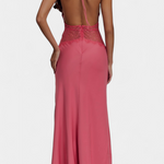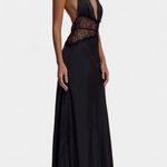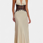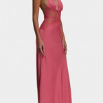 Descoperă Ashanty: un design care iradiază senzualitate rafinată și eleganță sofisticată. Acest rochie îmbină un decolteu halter pronunțat cu o bandă delicată de dantelă la talie, creând un contrast perfect între subtil și îndrăzneț.