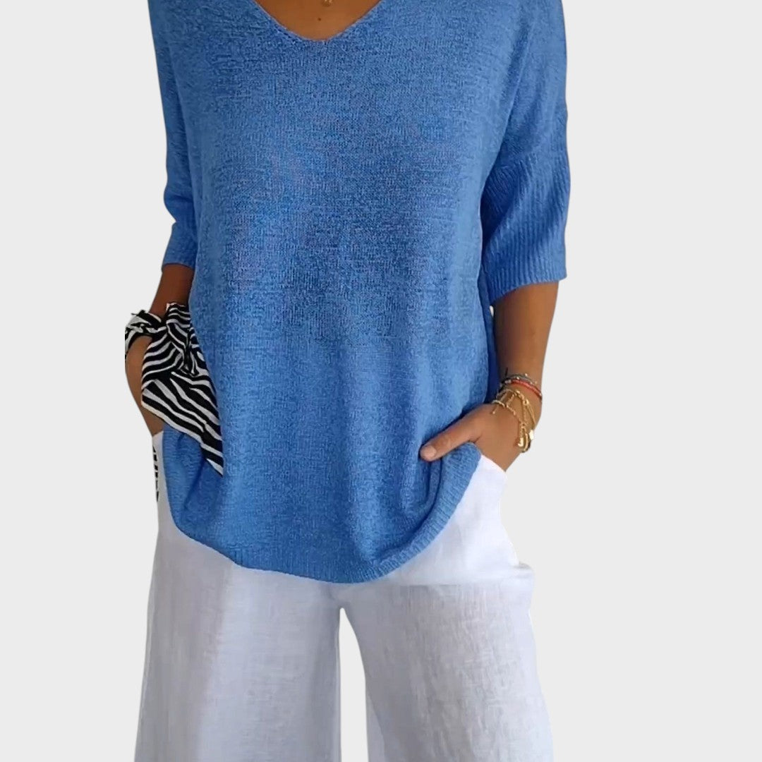 Fii în centrul atenției cu topul Filipa, care combină stilul și confortul într-un design cu adevărat chic. Acest pulover este conceput pentru a-ți oferi potrivirea perfectă și o senzație de lux, astfel încât să poți acționa cu încredere. Indiferent dacă ieși cu prietenii sau ești la muncă, puloverul Filipa te va menține elegantă și pregătită pentru orice situație.